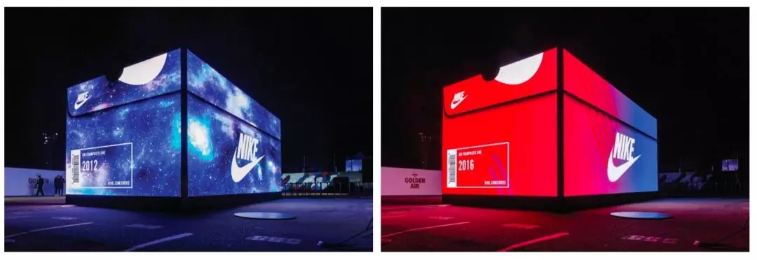 这种手法十分常见,但也不仅仅是放大,除此之外,也会用LED的屏幕增加可变的视觉效果。通过扩大尺度,会吸引许多眼球,获得很好的效果。